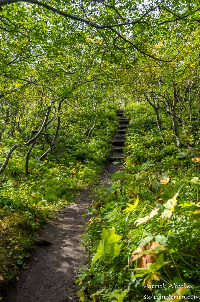Asbyrgi c’est un immense canyon creusé dans le basalte réputé pour abriter une des dernières forets d’Islande, plusieurs itinéraires de randonnée sont balisés dans les environs.
