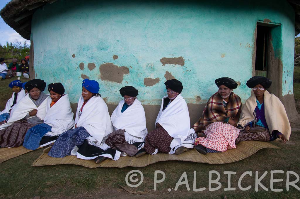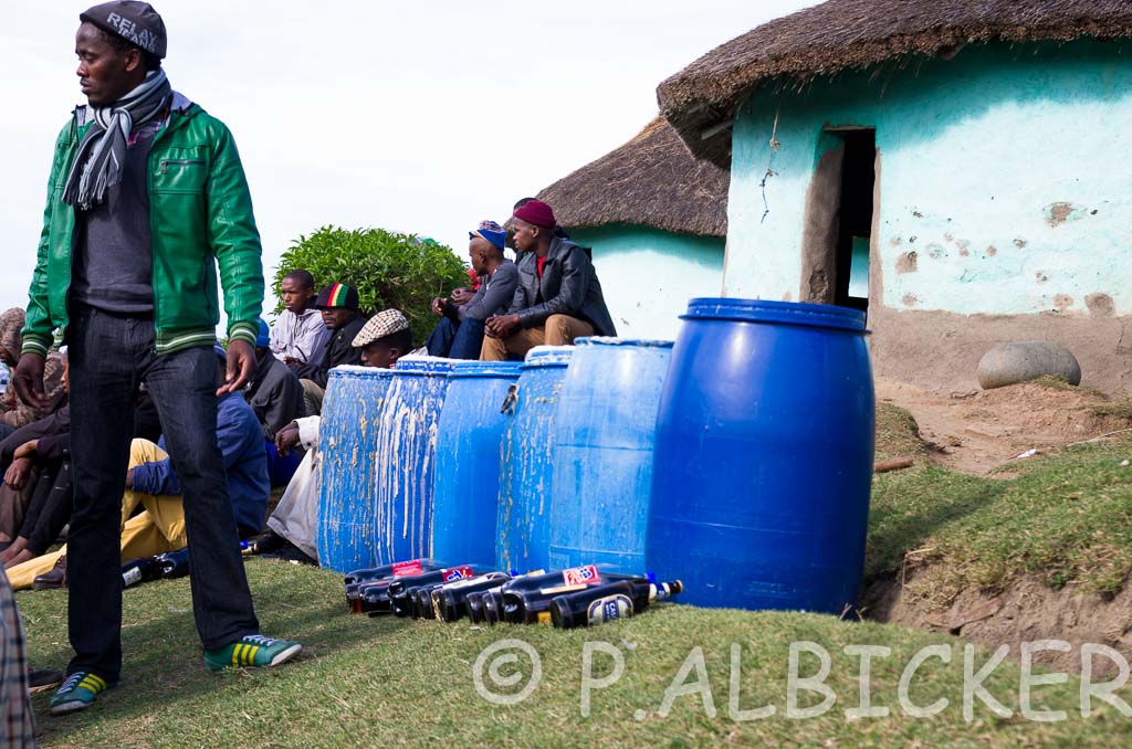 Aujourd’hui j’ai rendez vous avec Issac qui m’emmène avec lui assister a des festivités Xhosas qui ont lieu dans sa famille. On grimpe la colline pour aller au village, au passage on passe chez lui et il me montre la case ou lui, sa femme et son fils vivent, c’est spartiate ! Un peu plus loin on visite une case ou de futurs hommes font leur initiation, ils sont couvert d’argile blanche et vivrons la plusieurs jours.