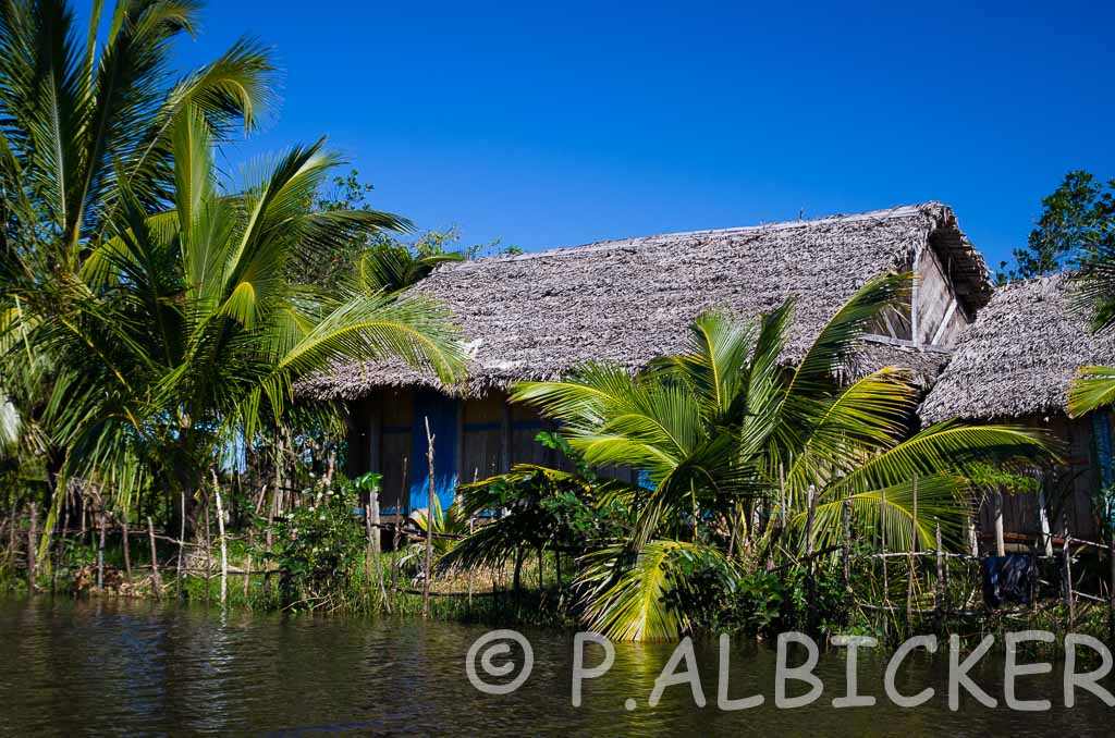 On embarque pas 2 mais 4 piroguiers pour 1 seul passager, il faut dire qu’on est a contre vent et que ça ne sera probablement pas de trop la pirogue étant large et suffisamment grande pour 6 voir 8 passagers. La première étape consiste a se rendre a l’embouchure du fleuve, meme si on est dans Manakara on as pas l’impression d’être en ville, il y a quelques maisons au ras de l’eau ou les habitants vaquent a leurs occupations : laver le linge, faire la cuisine, des enfants qui jouent et me salue, des zébus qui broutent tranquillement.