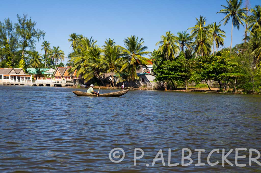 Je trouve un piroguier qui m’emmènera visiter les environs, on fait une assez grande distance en pousse pousse pour arriver jusqu’au canal des Pangalanes. Il s’agit d’un immense ouvrage d’époque coloniale, il longe la cote sur presque 700km, 420km entre Tamatave et Manajary sont encore navigables en partie naturel et en partie construit par l’homme, notamment des prisonniers de guerre. Il traverse lacs, lagunes et rivières et permet d’éviter la navigation dans l’océan indien, très dangereuse a cause des vagues, courants forts et requins.